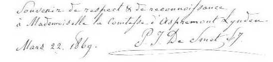 (op 22/3/1869 voor gravin Charlotte d'Aspremont Lynden (1818-1881) door De Smet geschreven; de foto werd in 1859 tijdens het beraad in fort Vancouver genomen)